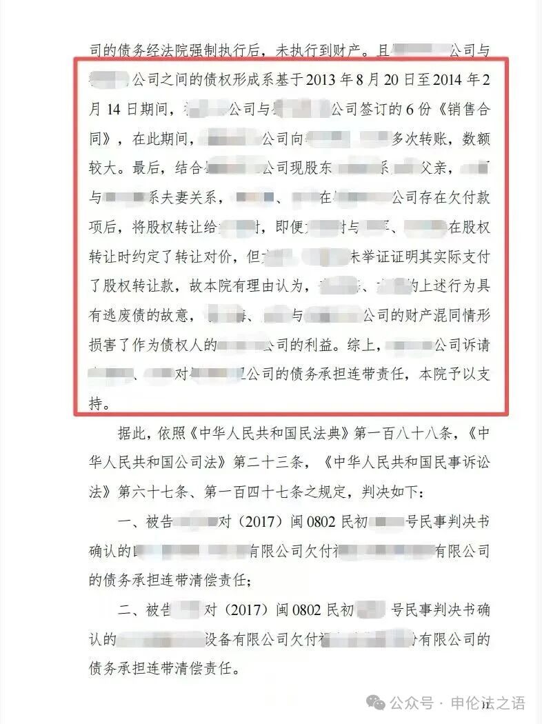 在实体判断方面,法院指出,公司法人独立与股东有限责任是公司制度的基本原则,但当股东滥用公司法人独立地位、逃避债务,严重损害债权人利益时,应依法承担连带责任。认定公司人格混同,关键在于公司是否具备独立财产与独立意思,其核心表现为公司财产与股东财产是否混同且无法区分。